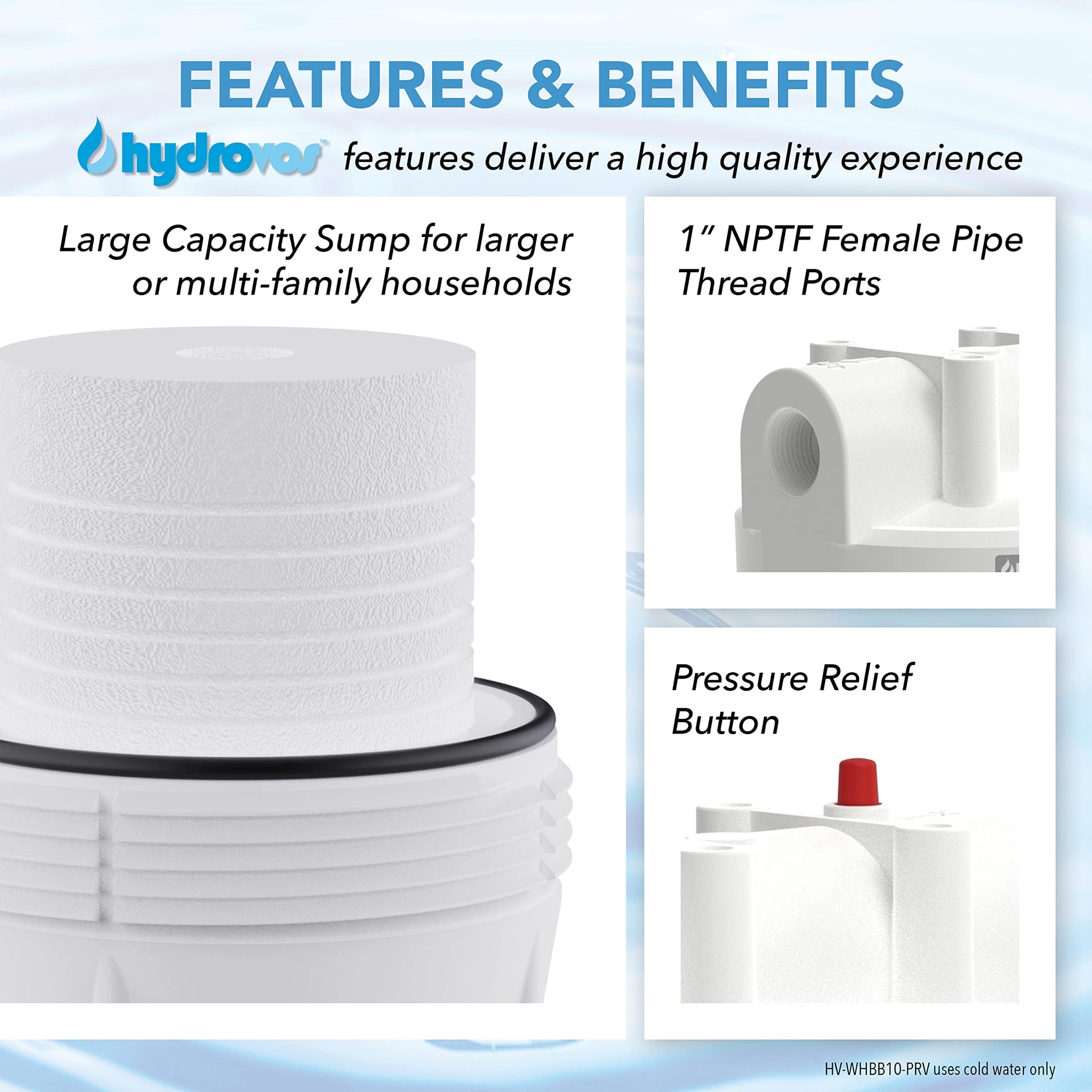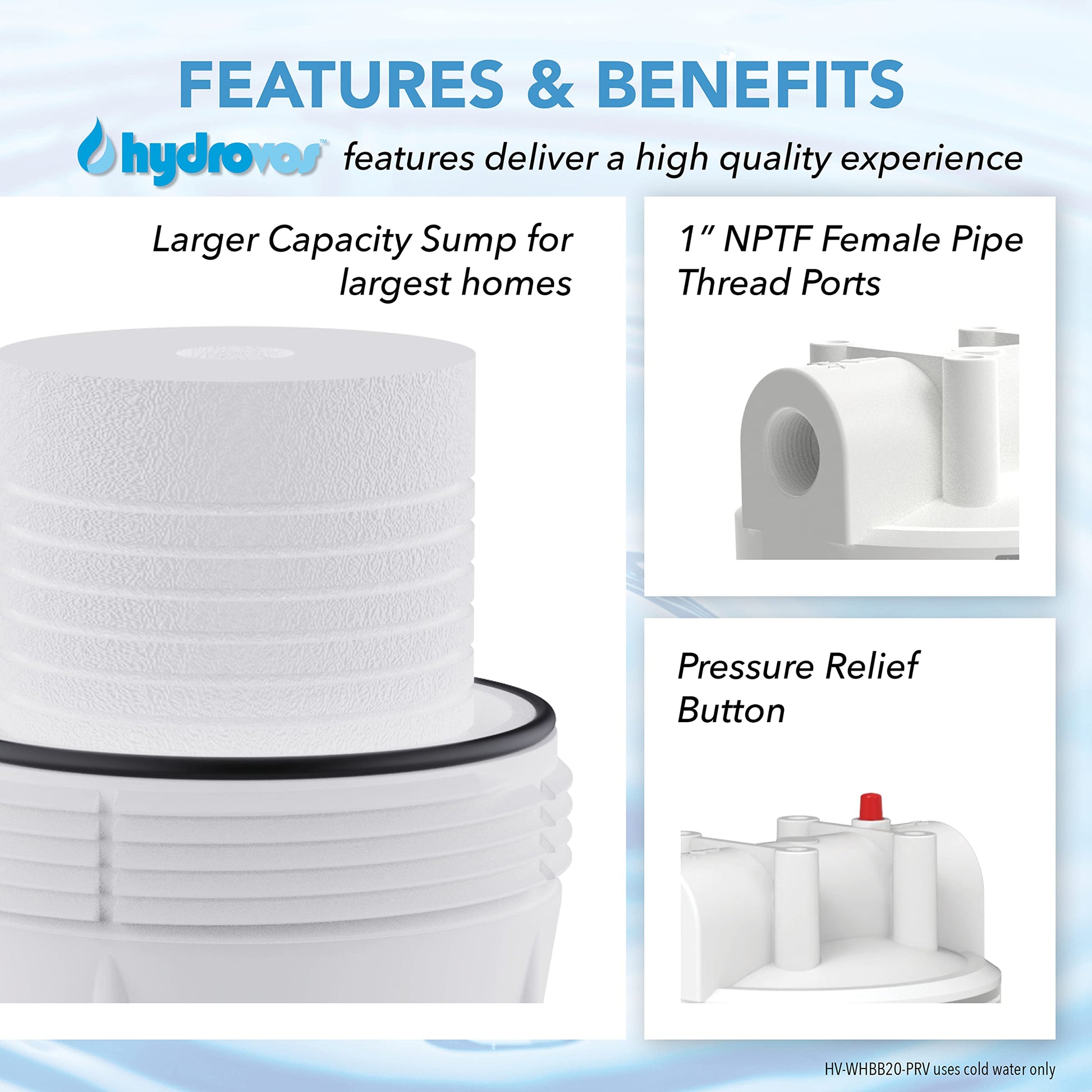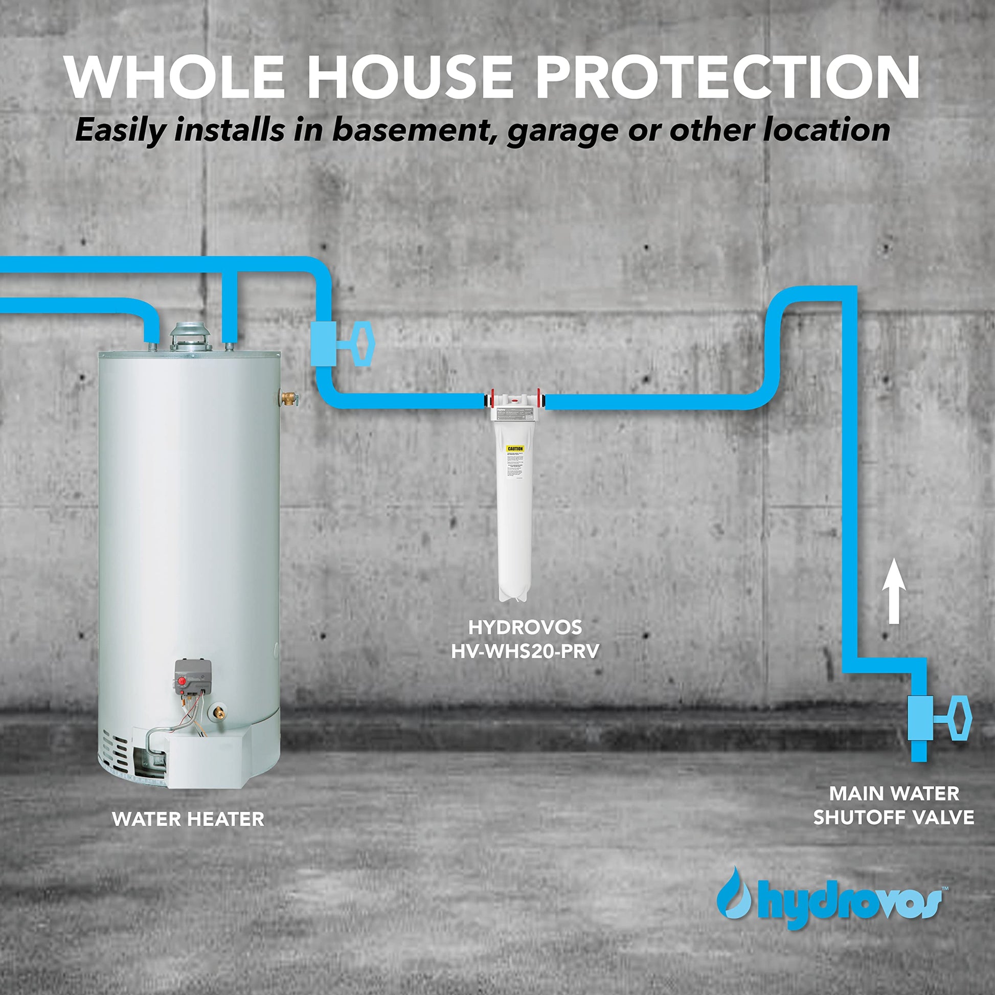 - PROTECTION FOR YOUR WHOLE HOME – HV-WHS20-PRV, when used with Hydrovos Standard Whole House filters like HV-WHS20-5M, provides protection for your pipes, fixtures, water using appliances, everywhere you use water in your home. Single-Stage Filtration Reduces Sediment, Sand, Soil, Silt, & Rust.