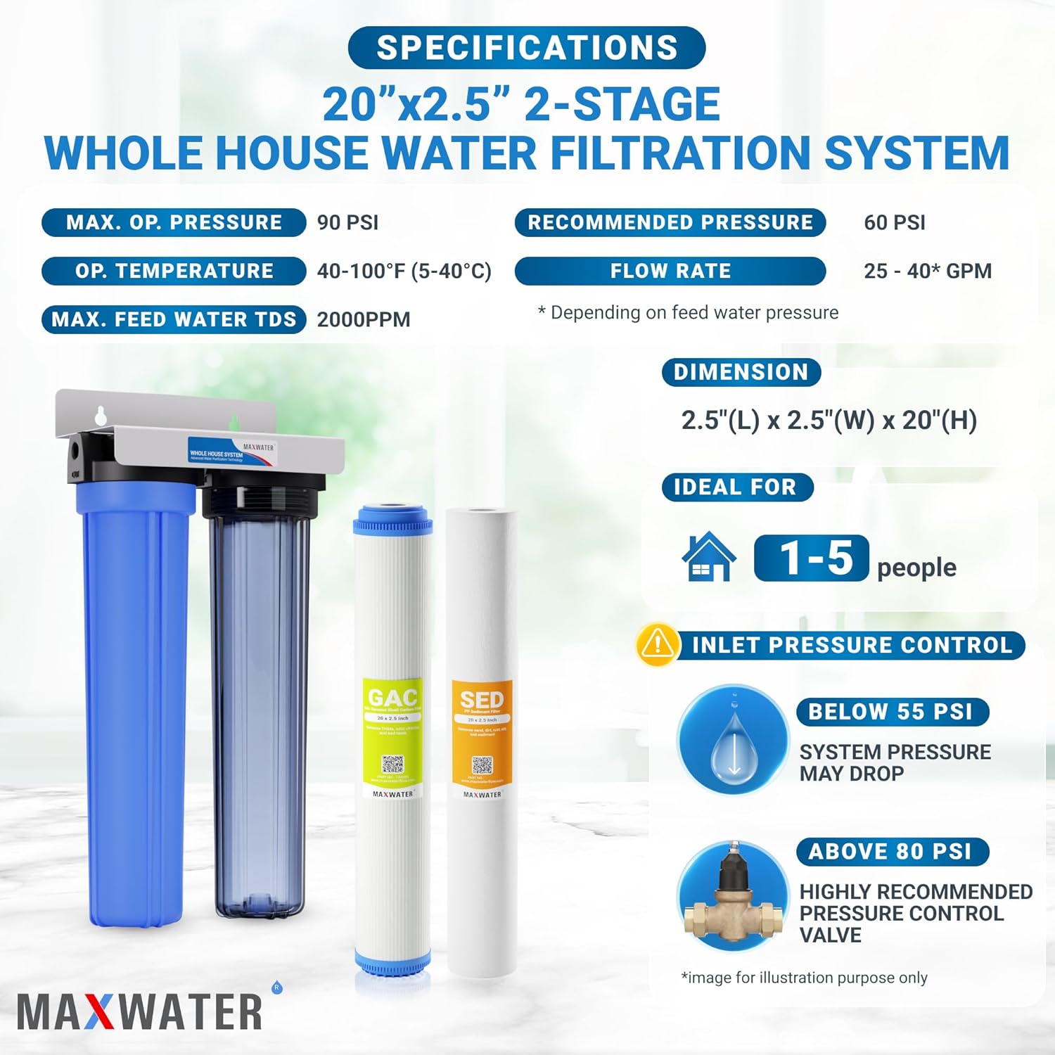- š§ Two-stage filtration: The Max Water Whole House Water Filter System features a two-stage filtration process that effectively removes sediment, carbon, and other contaminants from your water supply. This ensures that your water is clean and safe for consumption, protecting your family from harmful pollutants.