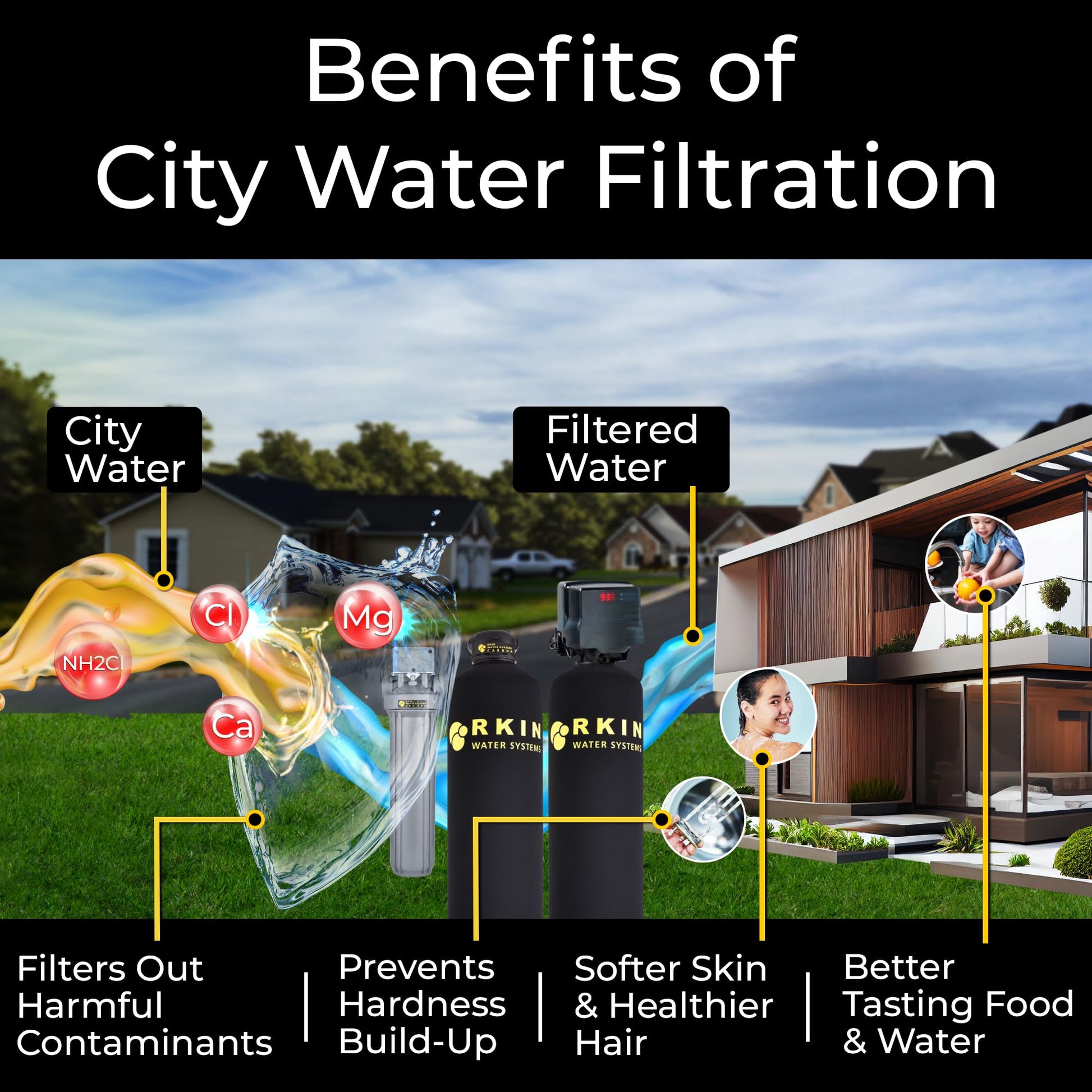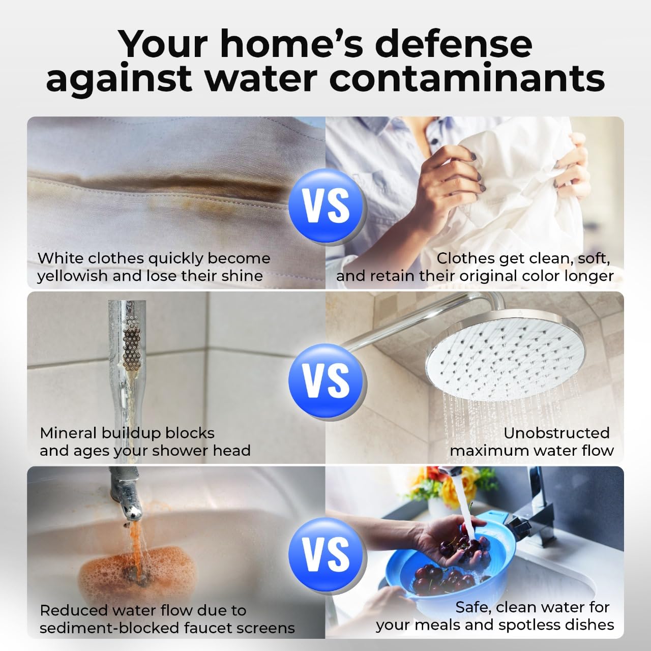 - Transforms ordinary tap water into filtered, healthy spring-like water throughout your entire home.